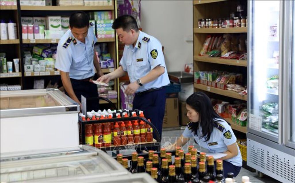 | Market surveillance officers conduct an inspection of goods at a store in Ninh Binh province__Photo: VNA |