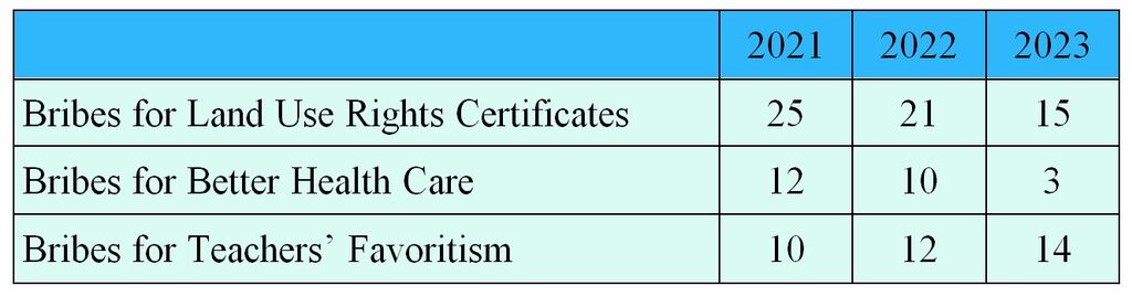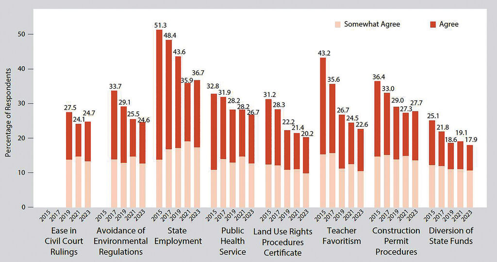 Overall, most indicators measuring the public sector’s performance in control of corruption showed an improvement in anti-corruption efforts in 2023. This may be a result of impacts of the anti-corruption campaign underway since 2016.