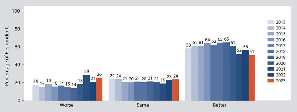 | Figure 10: Changes in selected issues of greatest concern, 2015-23 |