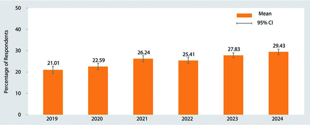 | Figure 12: Percentage of respondents with social insurance, 2019-24 |