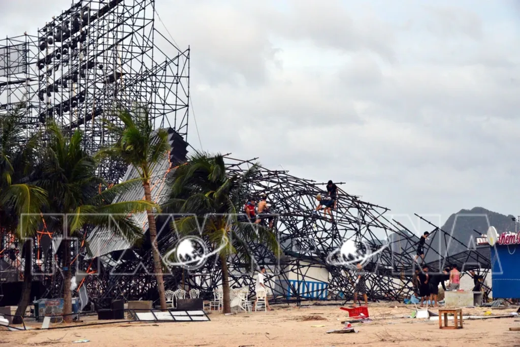 Outdoor entertainment stages in Ha Long City collapses due to Typhoon No. 3.__Photo: Thanh Van – VNA