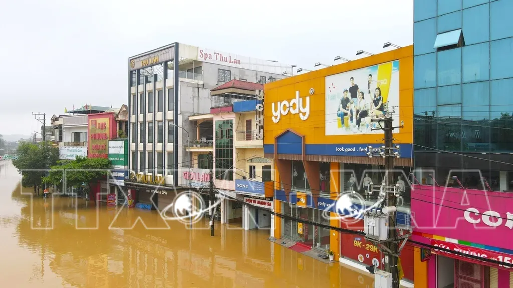 The wards of Hong Ha, Thai Hoc, and Yen Ninh (Yen Bai city) experience deep flooding on the morning of September 9, 2024.__Photo: Tuan Anh – VNA