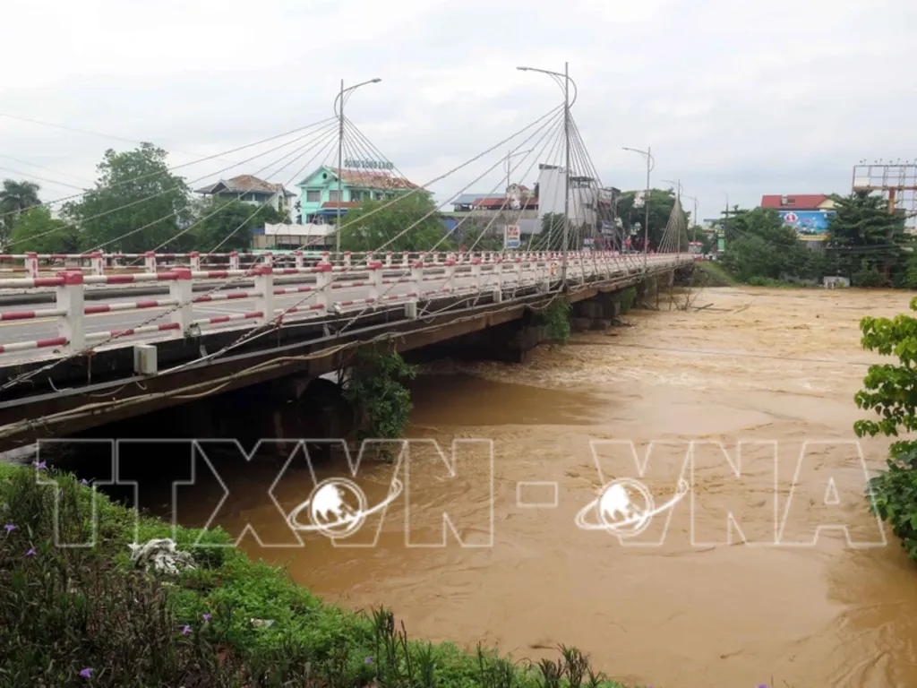 The water level on the Cau River, at the Gia Bay bridge section rises.__Photo: Thu Hang - VNA