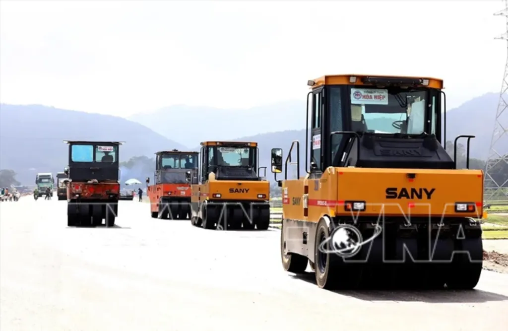 | Contractor Hoa Hiep lays the second layer of asphalt (C19) for contract package No. 3 on the route. (Photo: VNP/VNA) |