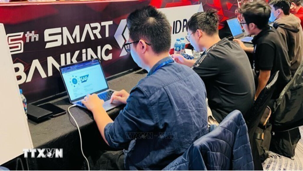 | Technology engineers participate in a cybersecurity drill in the financial and banking sector __Photo: VNA |