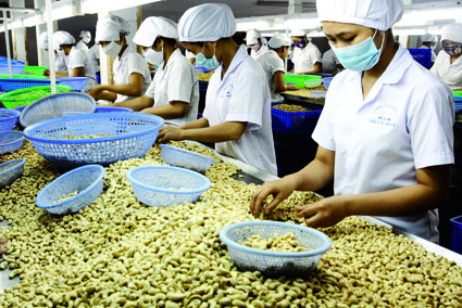 | Processing cashew nuts for export at Nhat Huy Joint-Stock Company (Binh Duong province)__Photo: Dinh Hue/VNA |