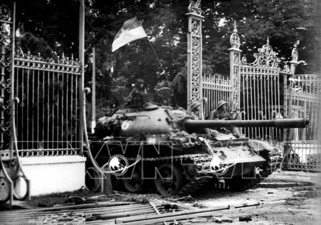 On April 30, 1975, a Liberation Army tank crashes through the iron gate, captures the Presidential Palace of the then Saigon regime, and triumphantly ends the nation’s 30-year-long struggle against foreign invaders, achieving the complete reunification of the country.__Photo: VNA