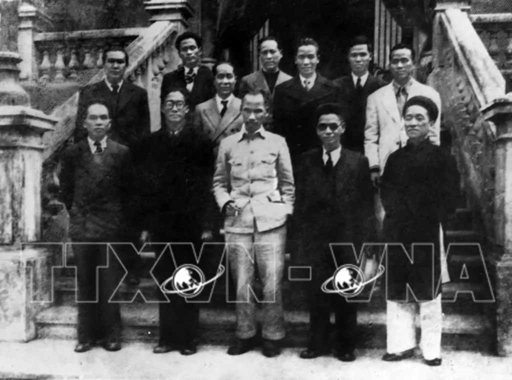 President Ho Chi Minh and members of the provisional Government Council of the Democratic Republic of Vietnam at the first meeting on September 3, 1945.__Photo: VNA