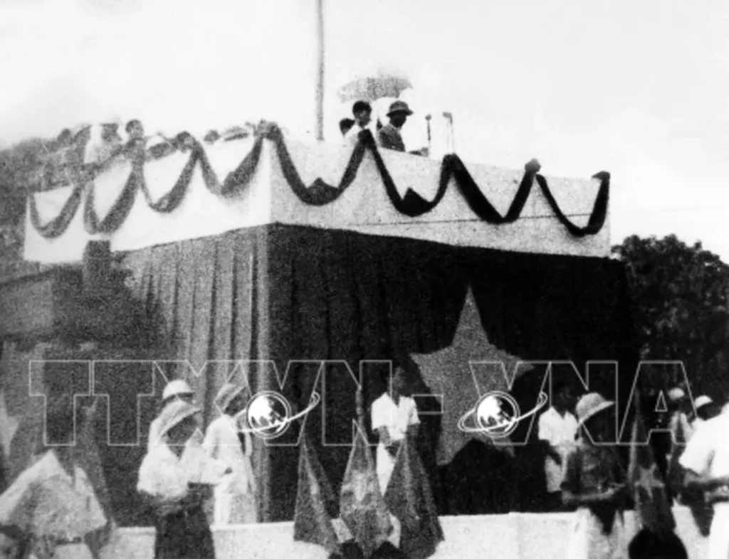 On September 2, 1945 at Hanoi’s Ba Dinh Square, President Ho Chi Minh reads the Declaration of Independence declaring the birth of the Democratic Republic of Vietnam (now the Socialist Republic of Vietnam) .__Photo: VNA
