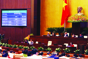| National Assembly deputies vote to adopt the Resolution ratifying the UN Convention against Torture__Photo: Nguyen Dan/VNA |