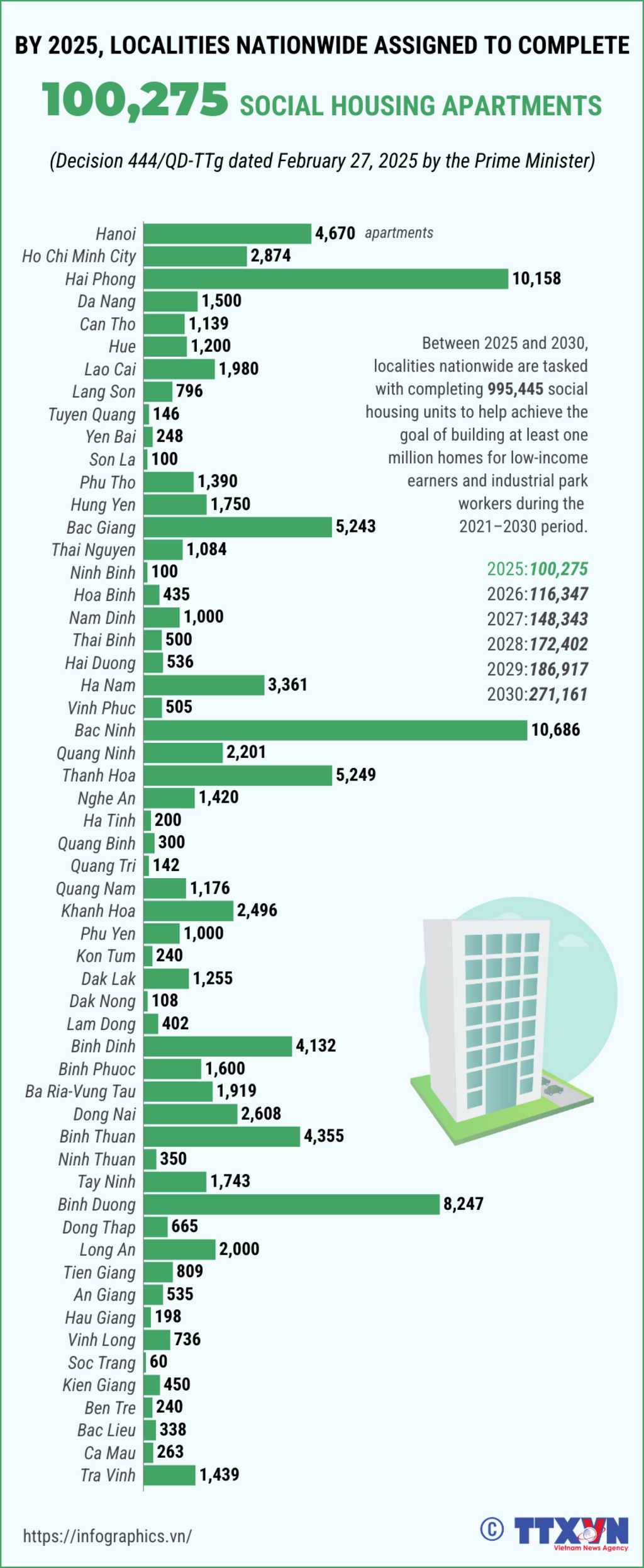 Prime Minister Pham Minh Chinh on February 27 signed Decision No. 444, setting targets for the completion of social housing by 2025 and the following years up to 2030. These targets will be incorporated into local socio-economic development plans.