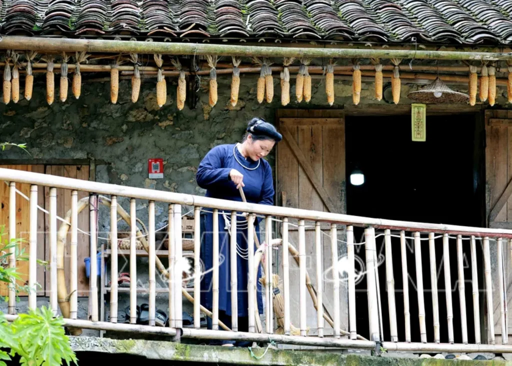 | Mac Thi Khon is preparing to welcome guests at her family’s traditional house, which has been renovated into a homestay in Khuoi Ky stone village, Trung Khanh district.__Photo: VNA |