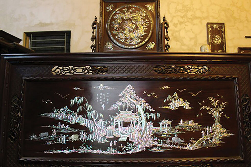 Legend has it that the craft of mother-of-pearl inlay, also known as nacre inlay, was passed on to Chuon Ngo villagers by Truong Cong Thanh (1053-99), a mandarin of the Ly dynasty (1010-1225). After helping General Ly Thuong Kiet defeat the Sung aggressors, he returned to the village and taught the villagers how to insert pieces of mussel and snail shells into wooden objects to create handicraft items. During the feudal period, Nguyen Van Phuc, Ly Muc and other Chuon Ngo artisans were invited to the Hue Imperial Citadel to produce various mother-of-pearl inlay objects, ranging from tableware to furniture, for the Royal Court. As time passed, generations of the Chuon Ngo village strived to preserve their millennium-old craft and their love for the craft is passed on to their descendants. Nowadays, on the ninth of the first lunar month, villagers hold an incense-offering ceremony in Truong Cong Thanh’s temple to show their gratitude and respect to the ancestor of the traditional mother-of-pearl inlay craft.