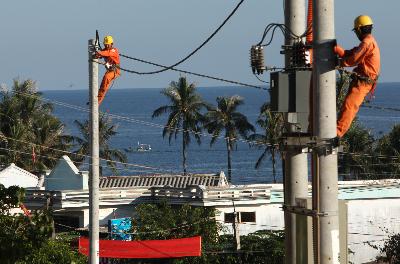 | Installation of power cables on Ly Son Island__Photo: VNA |