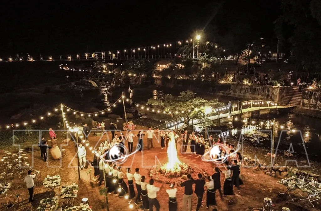 | Tourists participate in camp fire nights at the Na Su community-based tourism site__Photo: VNA |
