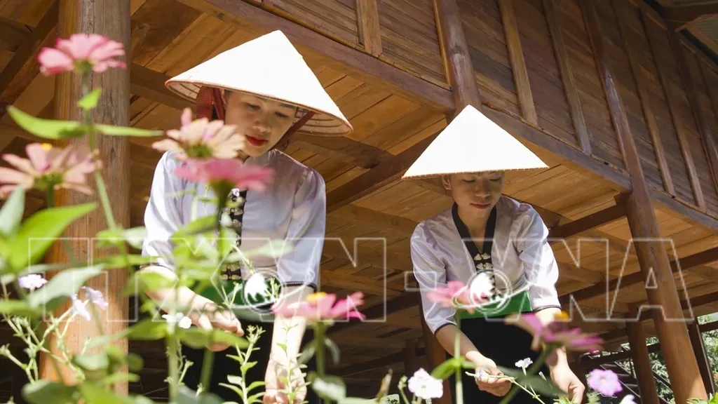 | White Thai women cultivate flowers to enhance the environment scenery at the Na Su community-based tourism site__Photo: VNA |