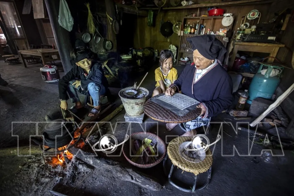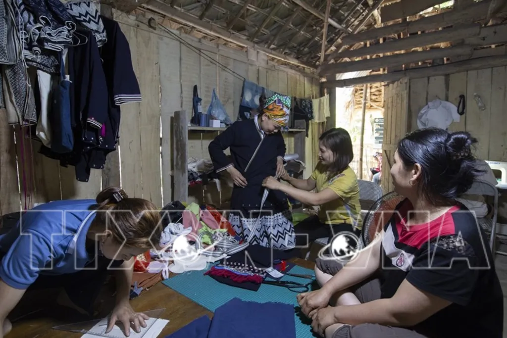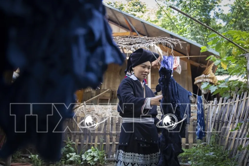 | The hands of Dao Tien women change colour from dyeing their clothes at an early age. It is tradition that young girls learn how to embroider, weave, and make their own outfits__Photo: VNA |