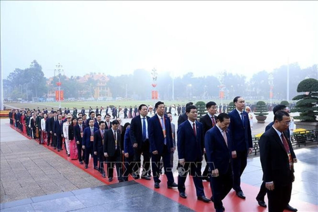 | Delegates to the 14th National Party Congress pay tribute to President Ho Chi Minh at his mausoleum in Hanoi on January 19, 2026__Photo: VNA |