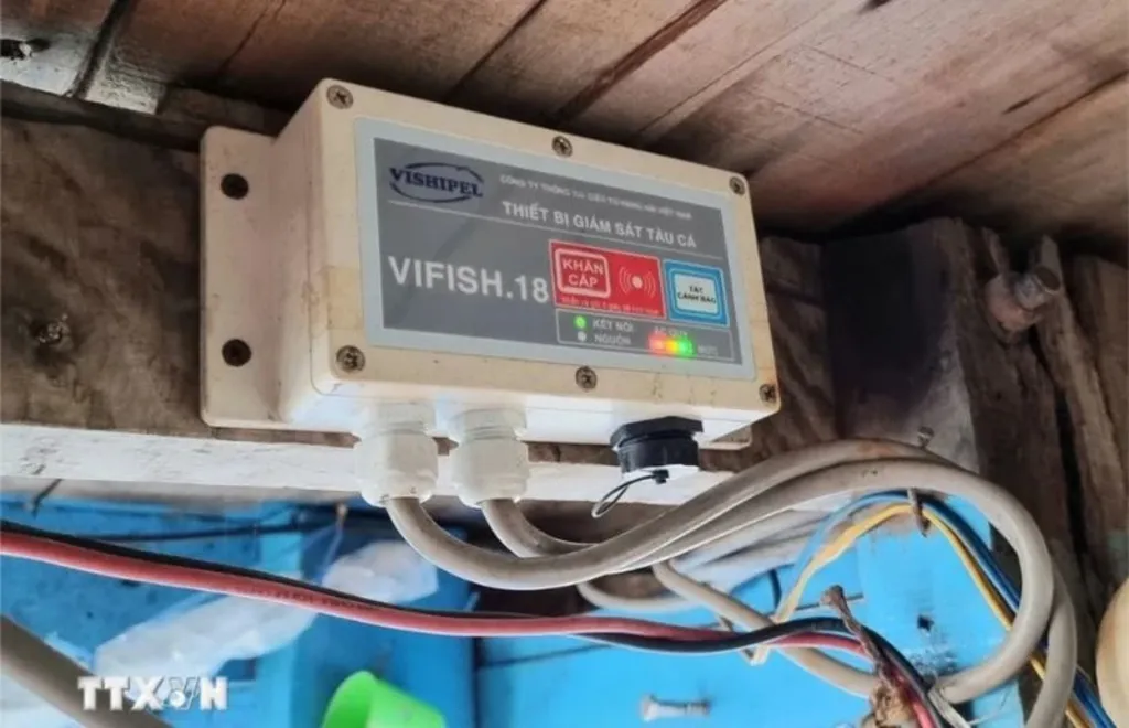 | A vessel monitoring system (VMS) installed on fishing boats of Ninh Thuan province's fishermen.__Photo: VNA |