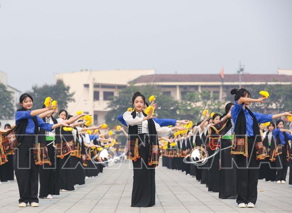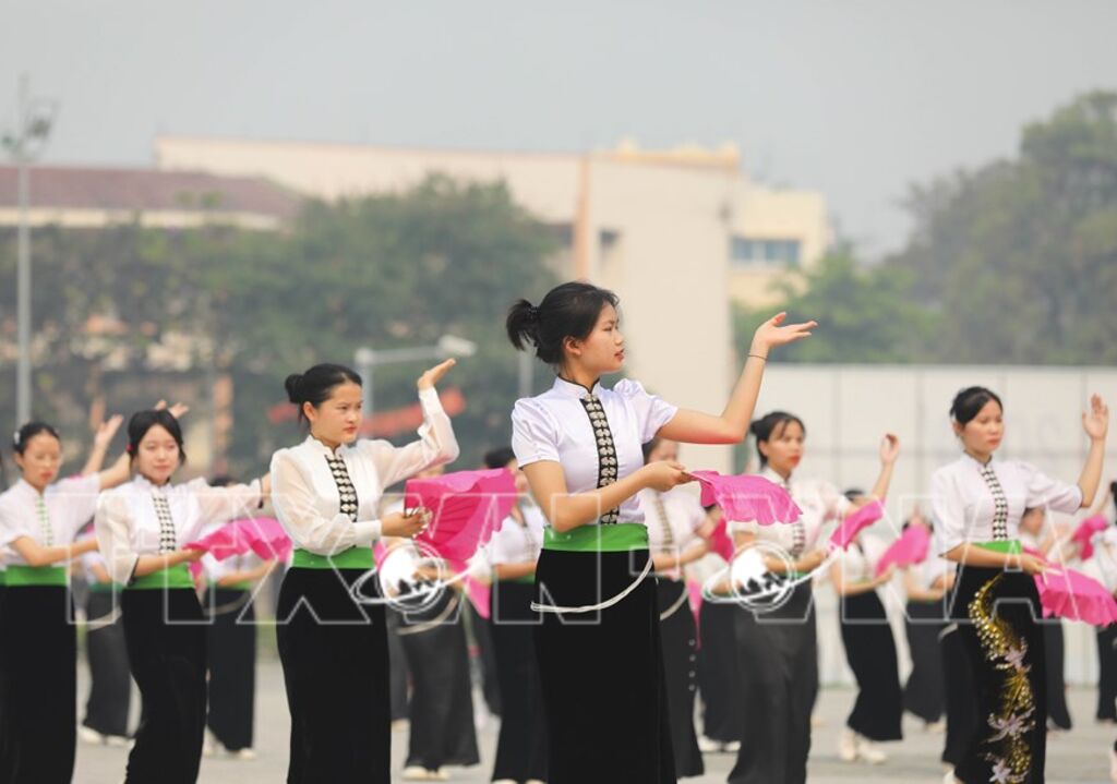 | Dances are performed at the Dien Bien Phu Victory Monument.__Photo: VNA |