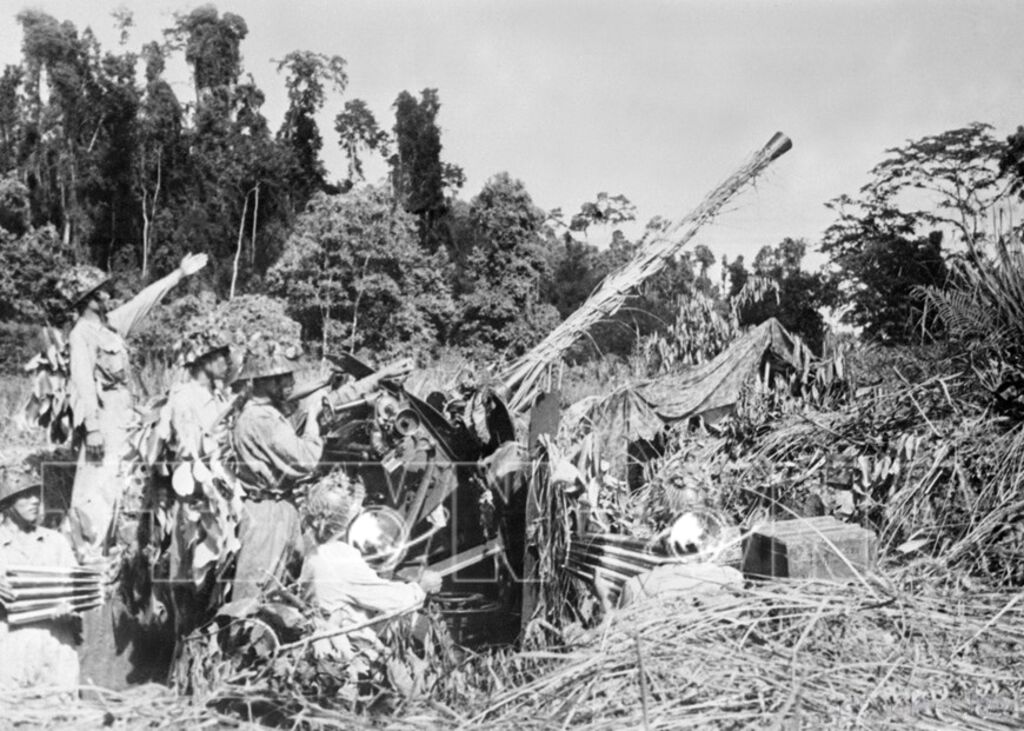 | The anti-aircraft artillery promotes its power, creating great problems for the French Army. On May 7, 1954, the historic Dien Bien Phu campaign successfully ends, with all enemy bases being destroyed.__Photo: VNA |