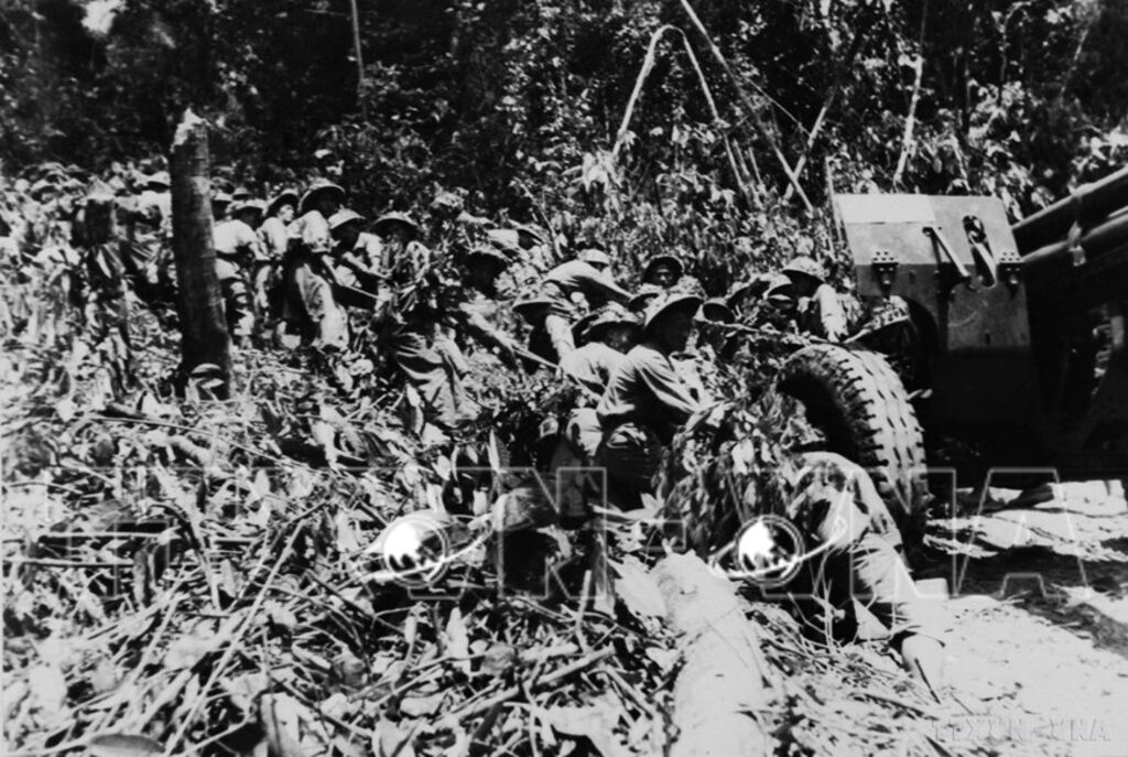 | Artillery soldiers overcome numerous difficulties to pull several-tonne cannons to the battlefield.__Photo: VNA |