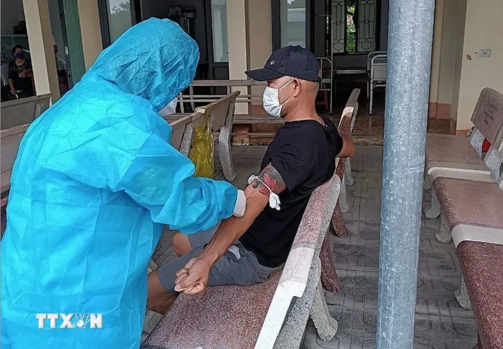 | Healthcare worker from Hiep Hoa District Medical Center in Bac Giang province is collecting blood sample from person at high risk of getting diphtheria.__Photo: VNA |