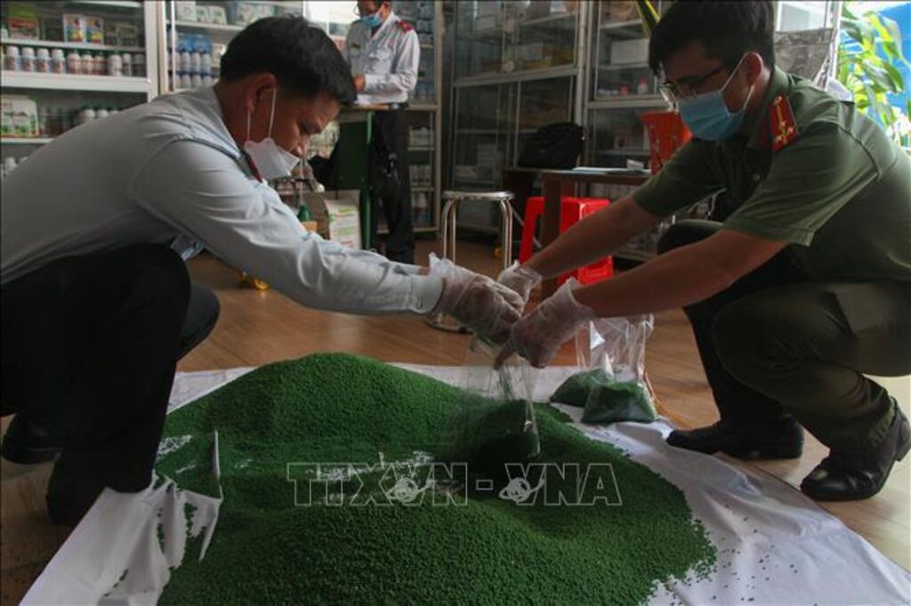 | An inspection team from the Department of Agriculture and Rural Development conducts sample collection at a fertilizer business in Hau Giang Province__Photo: VNA |