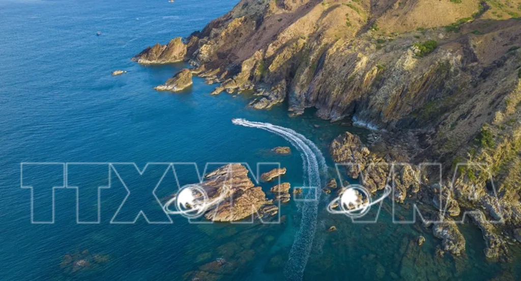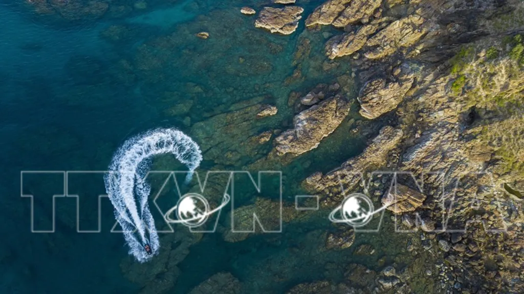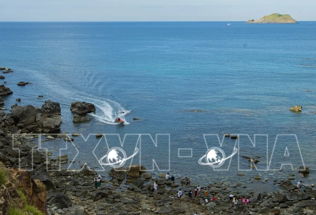 | A 30-minute drive from Quy Nhon city, Eo Gio enchants visitors with crystal-clear blue seas and untouched beauty. In the photo: Visitors go canoeing - a breathtaking water sport in the seas of Nhon Ly__Photo: VNA |