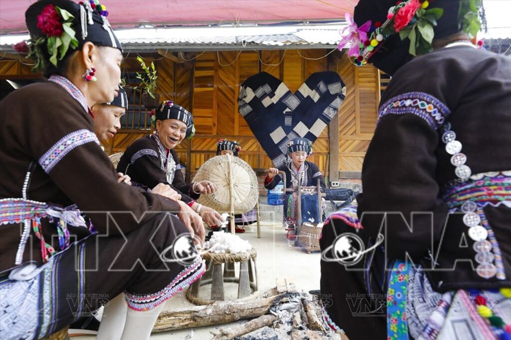 | Visitors learn about the brocade weaving of the Lu ethnic people__Photo: VNA |
