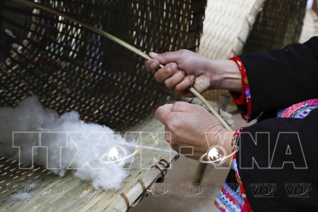 | Lu ethnic women are responsible for the various stages of weaving, including cotton spinning__Photo: VNA |