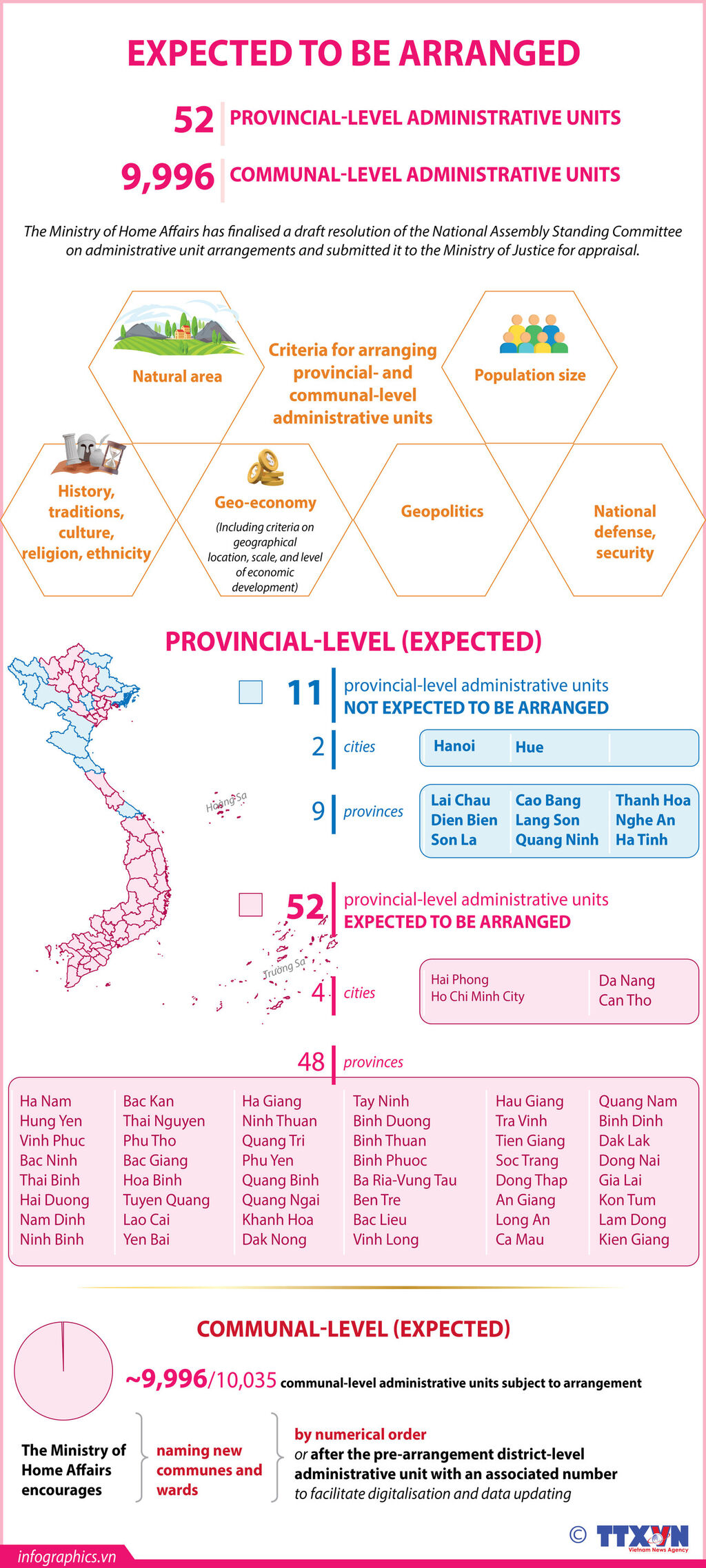 The Ministry of Home Affairs has finalized a draft resolution of the National Assembly Standing Committee on administrative unit arrangements and submitted it to the Ministry of Justice for appraisal.