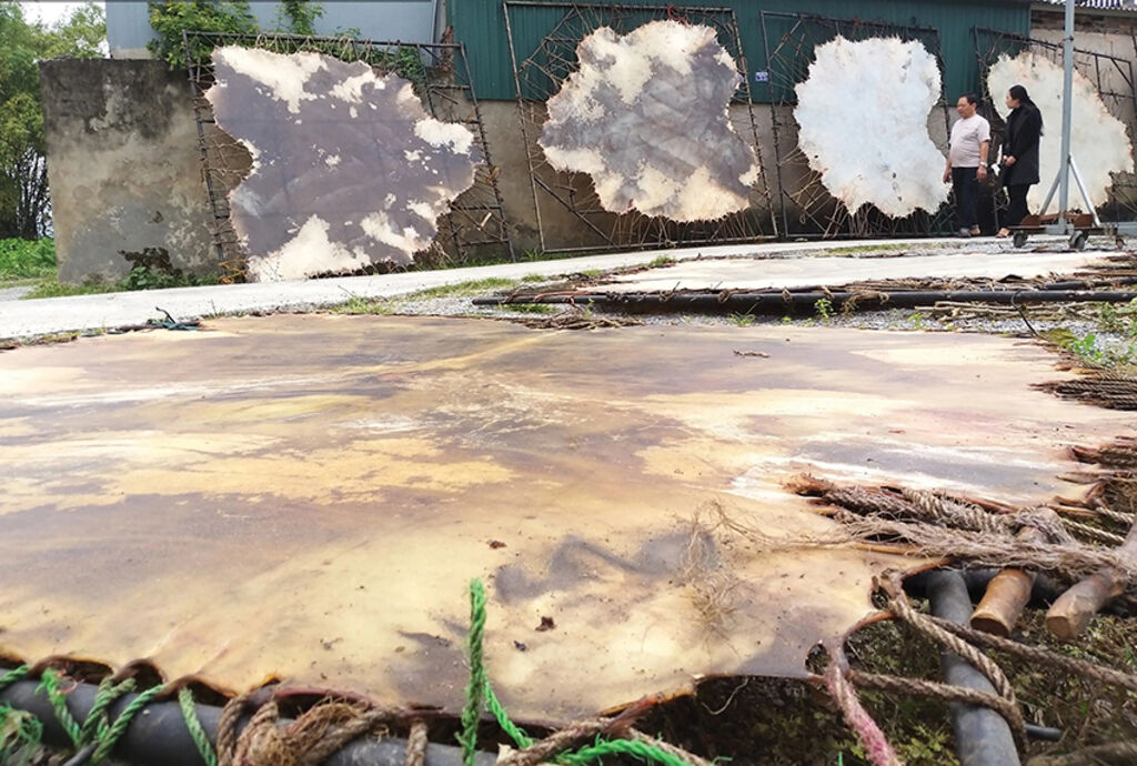 | Drying buffalo leather piece in the sun__photo: https://tronggodoitam.net/ |
