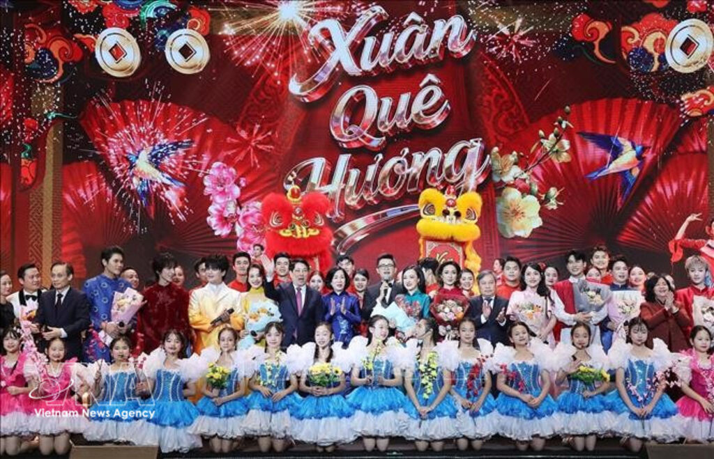 | President Luong Cuong, his spouse, delegates and artists at the special Spring Homeland Art Programme 2026__Photo: VNA |