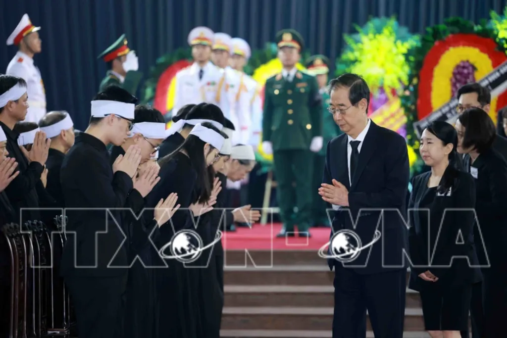 The Republic of Korea (RoK)'s delegation, led by Prime Minister Han Duck Soo, special envoy of the RoK President, pays respects to General Secretary Nguyen Phu Trong__Photo: VNA