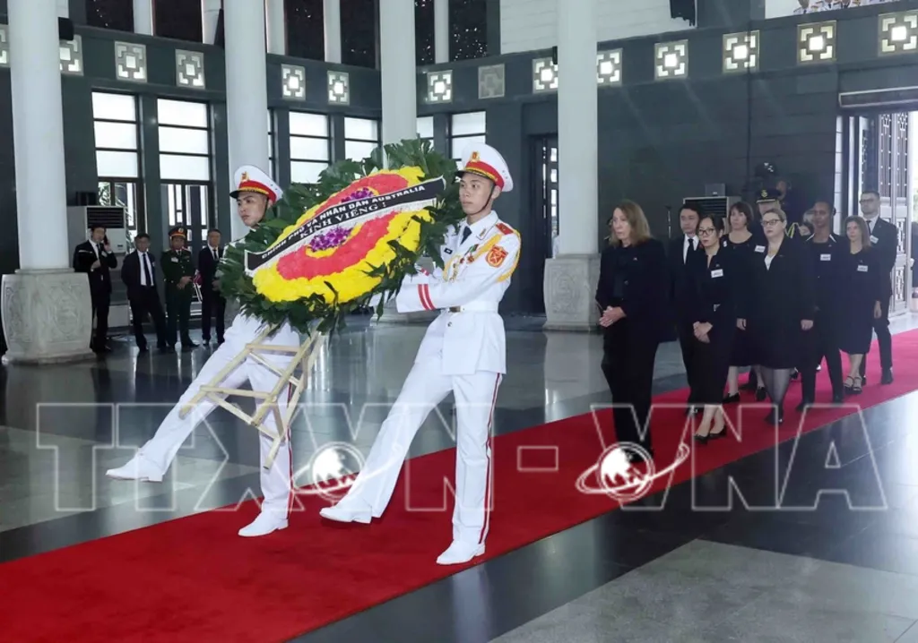 The Australian delegation, led by Senate President Sue Lines, pays respects to General Secretary Nguyen Phu Trong__Photo: VNA