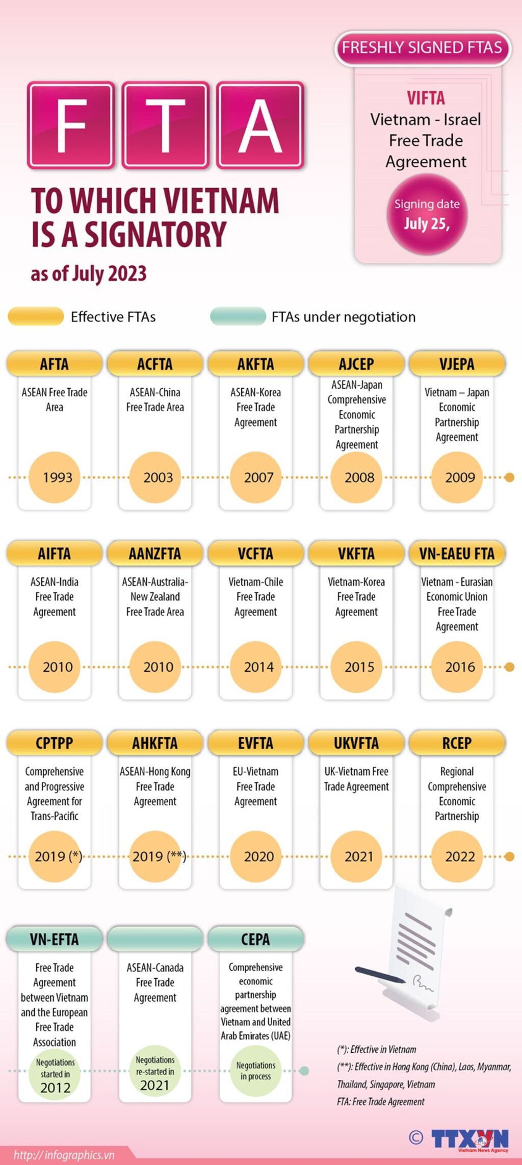 FTAs to which Vietnam is a signatory, as of July 2023