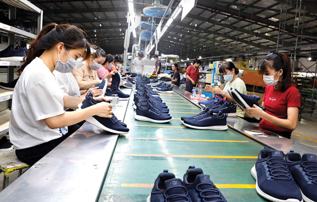 | Workers of Hoa Binh province-based Hong An Shoes JSC check the quality of shoes__Photo: VNA |