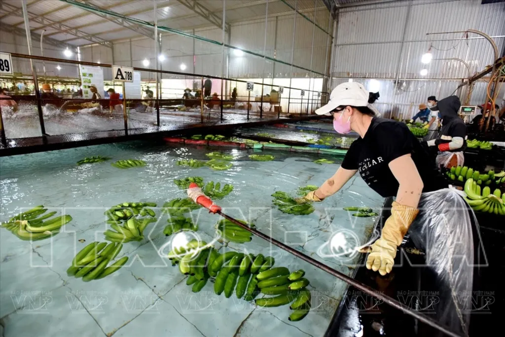 | Bananas are cleaned in a specialized tank system.__(Photo: VNP/VNA) |