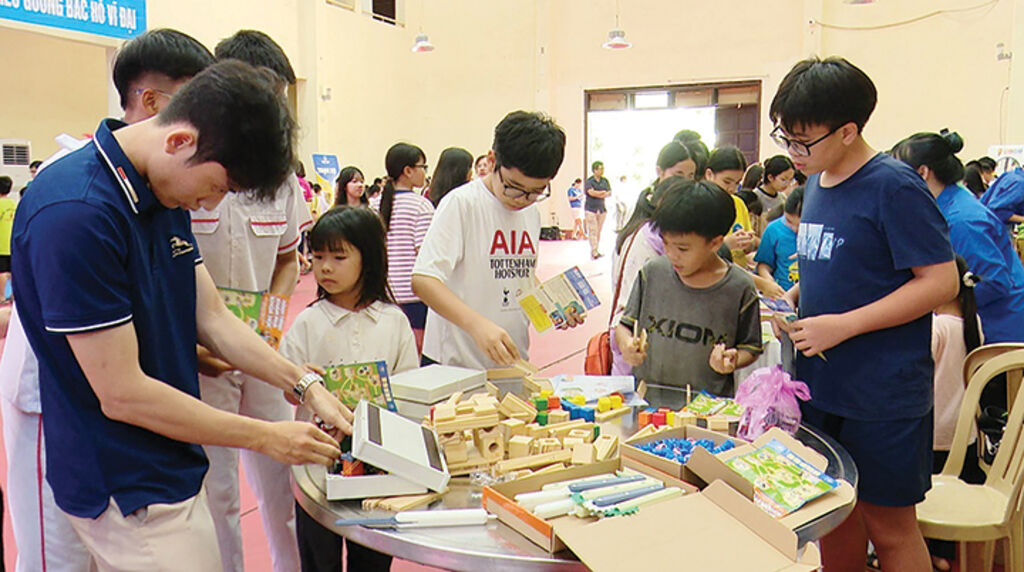 | Children participating in activities at the Creative Experiential Science Festival organized by the Ninh Binh Provincial Youth Center__Photo: Hai Yen/VNA |