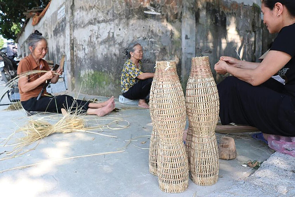 Strolling through Thu Sy village in Tien Lu district, Hung Yen province, visitors can see the elders sitting in front of their houses weaving fish and shrimp traps while sharing stories and laughter.
