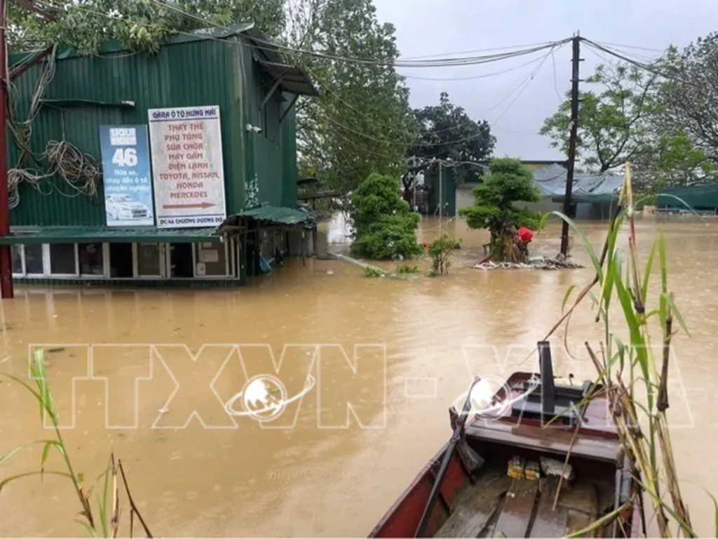 Prolonged heavy rains from the remnants of Typhoon No. 3, along with water released from hydropower reservoirs, have caused river levels in northern Vietnam to rise significantly. In Hanoi, the Red River’s water level is nearing alert level 1, leading to flooding in the riverside area of Phuc Xa.__Photo: VNA
