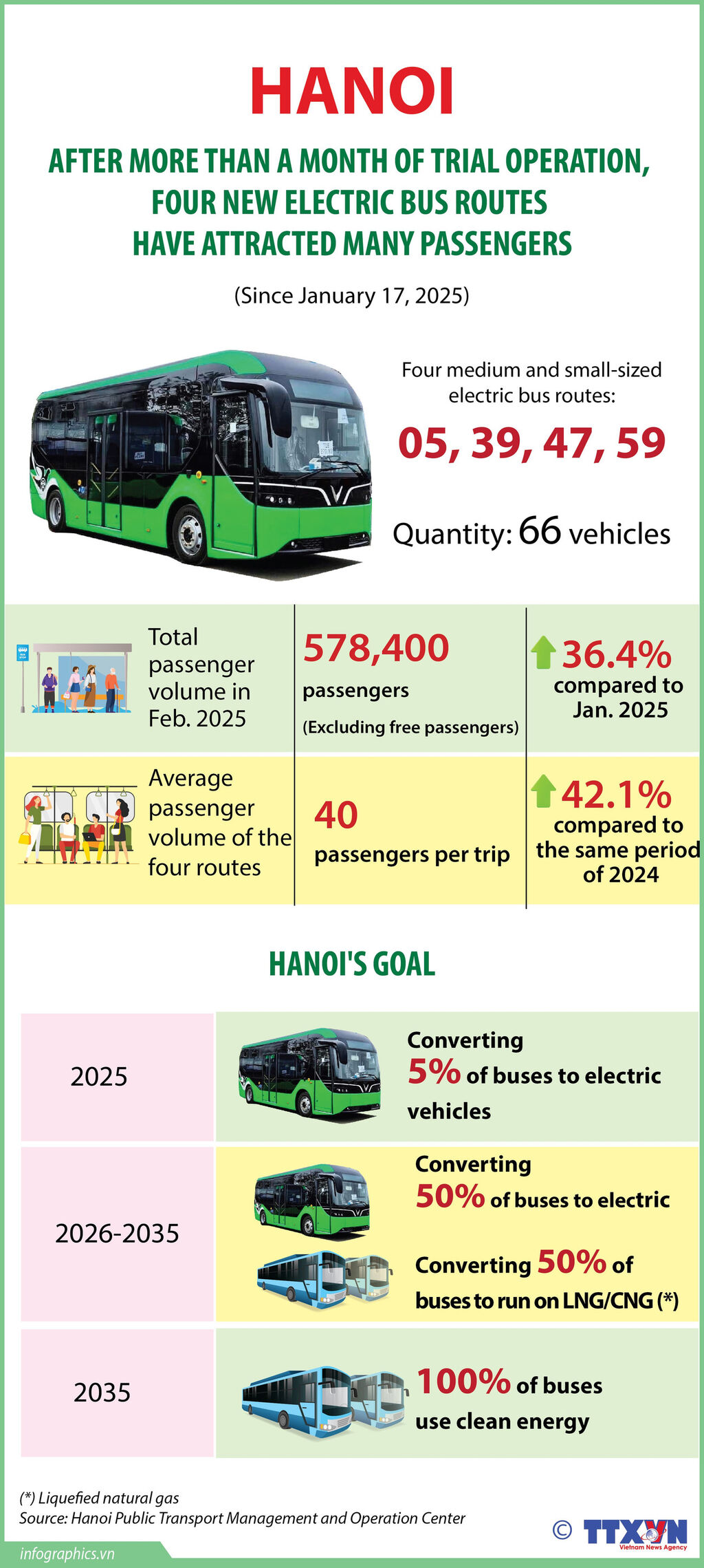 Since Hanoi converted routes 05, 39, 47, and 59 to electric buses, ridership has grown significantly, with both passenger volume and revenue increasing each month. According to a survey by the Hanoi Public Transport Management and Operation Centre, most passengers are satisfied with the service quality.