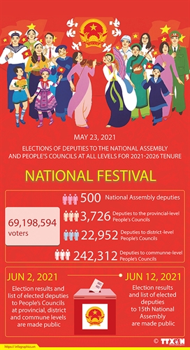 According to statistics of the Ministry of Home Affairs, this is the largest-ever general election, with nearly 69.2 million voters going to around 80,000 polls to elect 500 deputies to the 15th National Assembly from among 866 candidates. Meanwhile, 3,726 deputies will be elected to provincial-level People’s Councils, 22,952 deputies to district-level People’s Councils, and 242,312 deputies to communal-level People’s Councils, for the next five-year term.