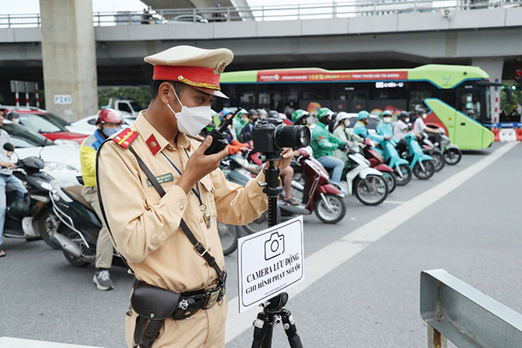 | Hanoi police have set up more than 20 surveillance points to record traffic violations for later fines in downtown areas__Photo: VNA |