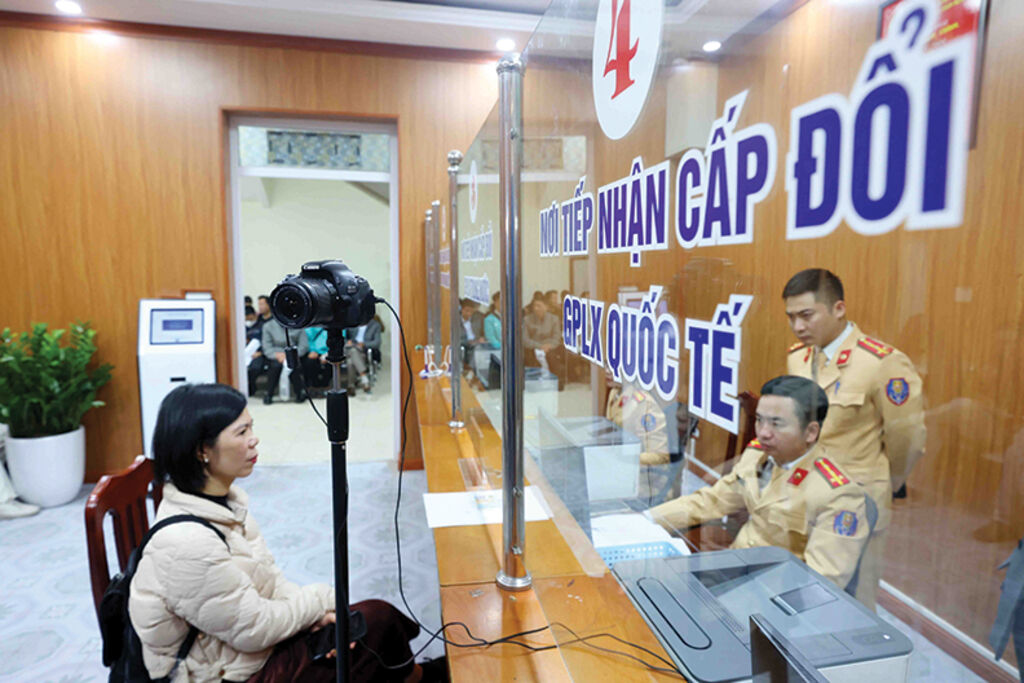 | A person applying for a driver’s license is taken photo at the Hanoi Public Security Department’s Traffic Police Division__Photo: Pham Kien/VNA |