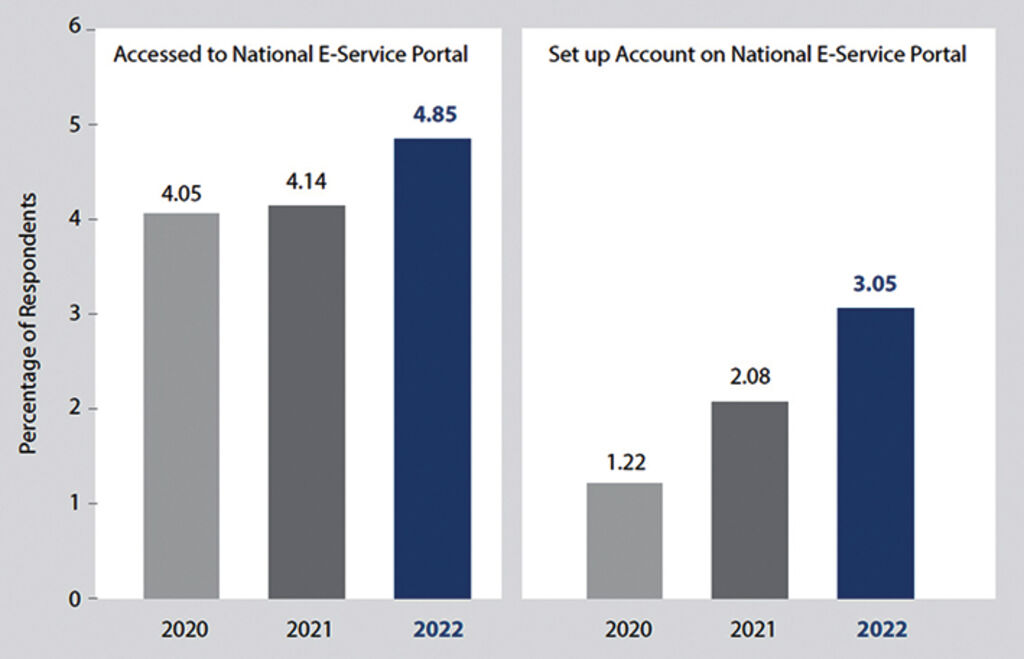 | Figure 1: Percentage of citizens that used the National E-Service Portal, 2020-22 |