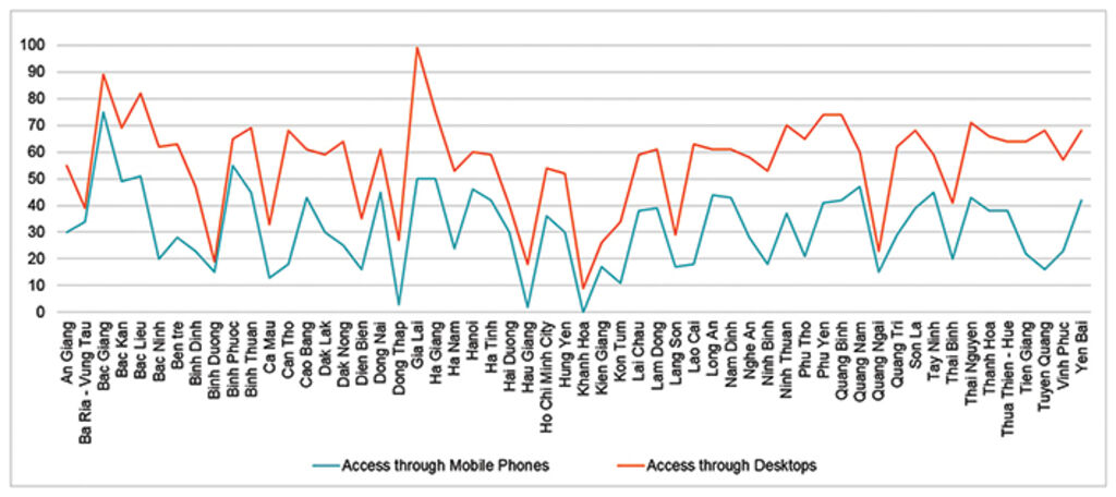 Moreover, findings from the action in-depth research series by the Ho Chi Minh National Academy of Politics and UNDP in Vietnam on the access to online public services for ethic communities in six provinces of Ha Giang, Hoa Binh, Quang Tri, Gia Lai, Soc Trang and Tra Vinh from 2021 to 2023[8] also revealed that the use of e-services in all six provinces was extremely limited. The main barriers include lengthy and burdensome requirements for logging into the ESPs and administrative procedures from government agencies as well as the lack of readiness by citizens to use the e-services. For instance, the request for registration and log-in with usernames and passwords before the use of an e-form for a simple administrative procedure could have prevented users from using e-services. This is let alone important technical issues like poor internet connections, flawed system configuration and lack of data synchronization that local governments have been facing.