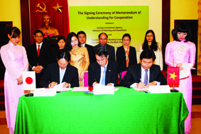 | Representatives of the Foreign Investment Agency and Sumitomo Mitsui Banking Corporation sign MoU for Japanese investment in Vietnam__Photo: Danh Lam/VNA |