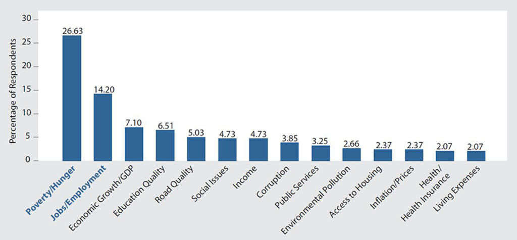 Figure 5 shows migrants’ issues of greatest concern. As with 2022 PAPI respondents who are permanent residents,[7] the most important issues for migrants in 2022 centered on their livelihoods: poverty and hunger first, jobs and employment second. Different from their permanent peers, migrants in receiving provinces were concerned about education quality for their children and this concern is among the top five issues.